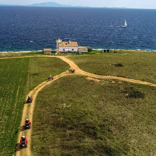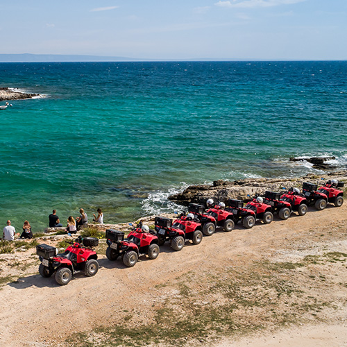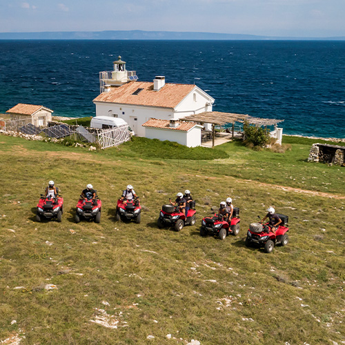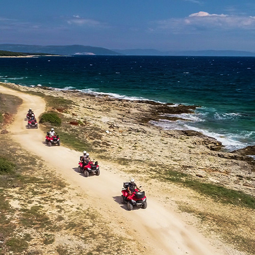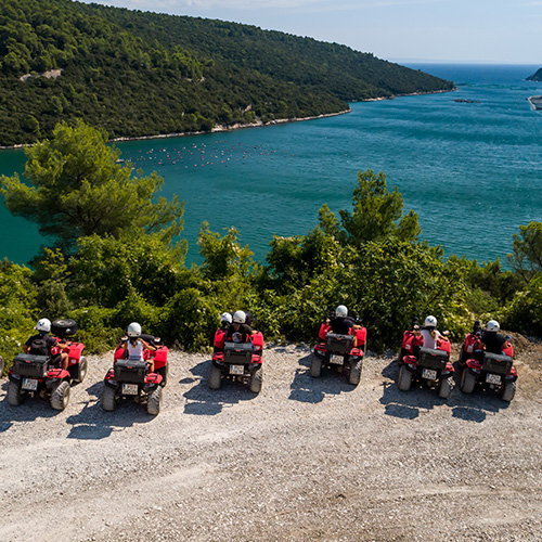 Dies ist eine der beliebtesten Quad-Touren unter unseren Besuchern, da sie sie zu ihrem eigenen geheimen Strand führt! Durch dichte Waldwege, Schotterstraßen und aufregende Offroad-Herausforderungen erreichen wir die Küste mit atemberaubendem Panoramablick auf das kristallklare Meer und die Inseln Cres und Lošinj.