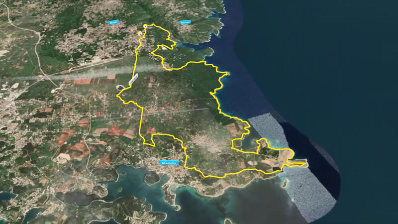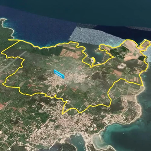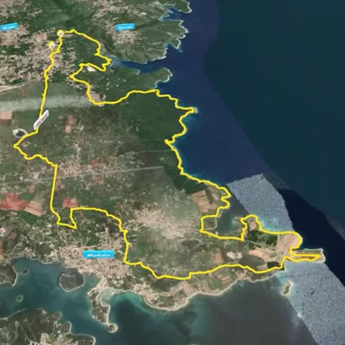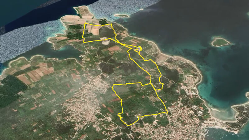 Nach einer kurzen Erkundung geht die Tour bergab weiter durch den Wald, dann über kurvige Waldwege zum Aussichtspunkt oberhalb der Fischzuchtanlage Budava, von dem sich ein spektakulärer Blick auf das Meer und die nahegelegenen Inseln eröffnet.